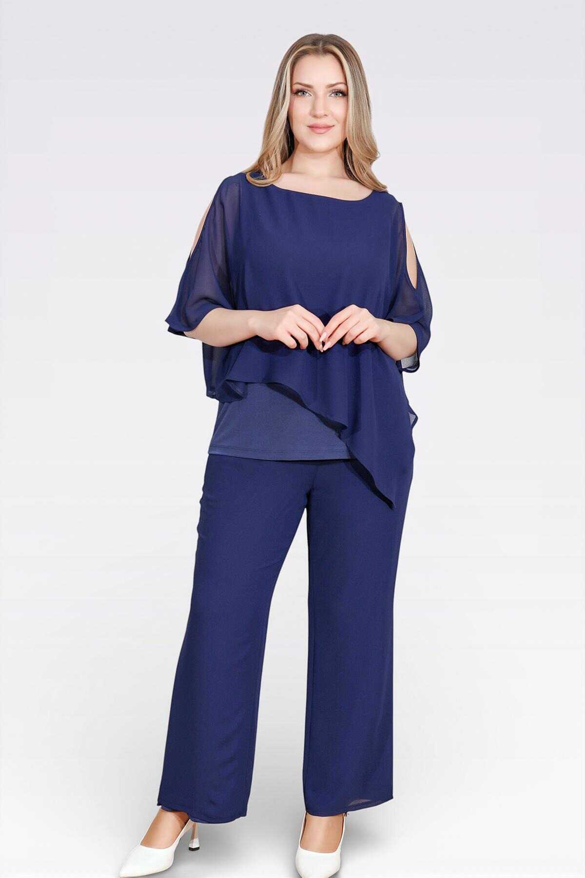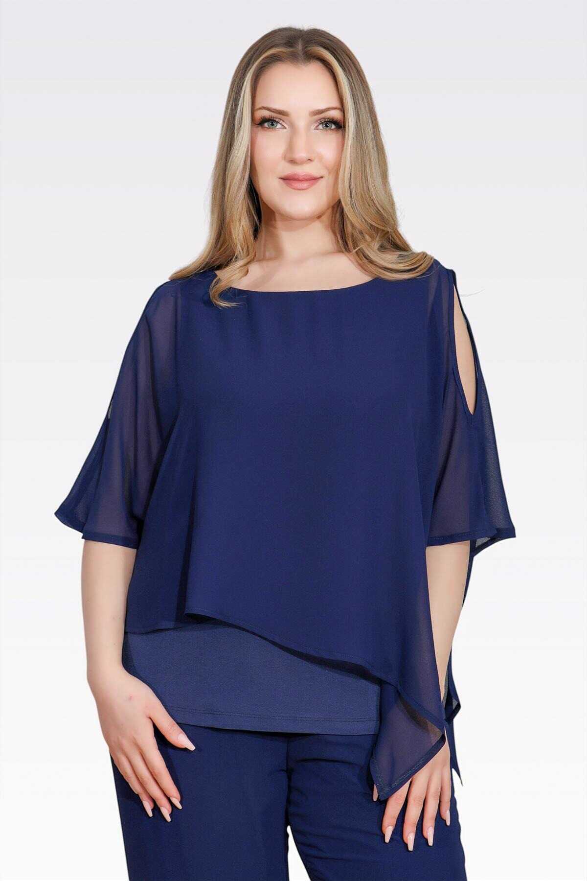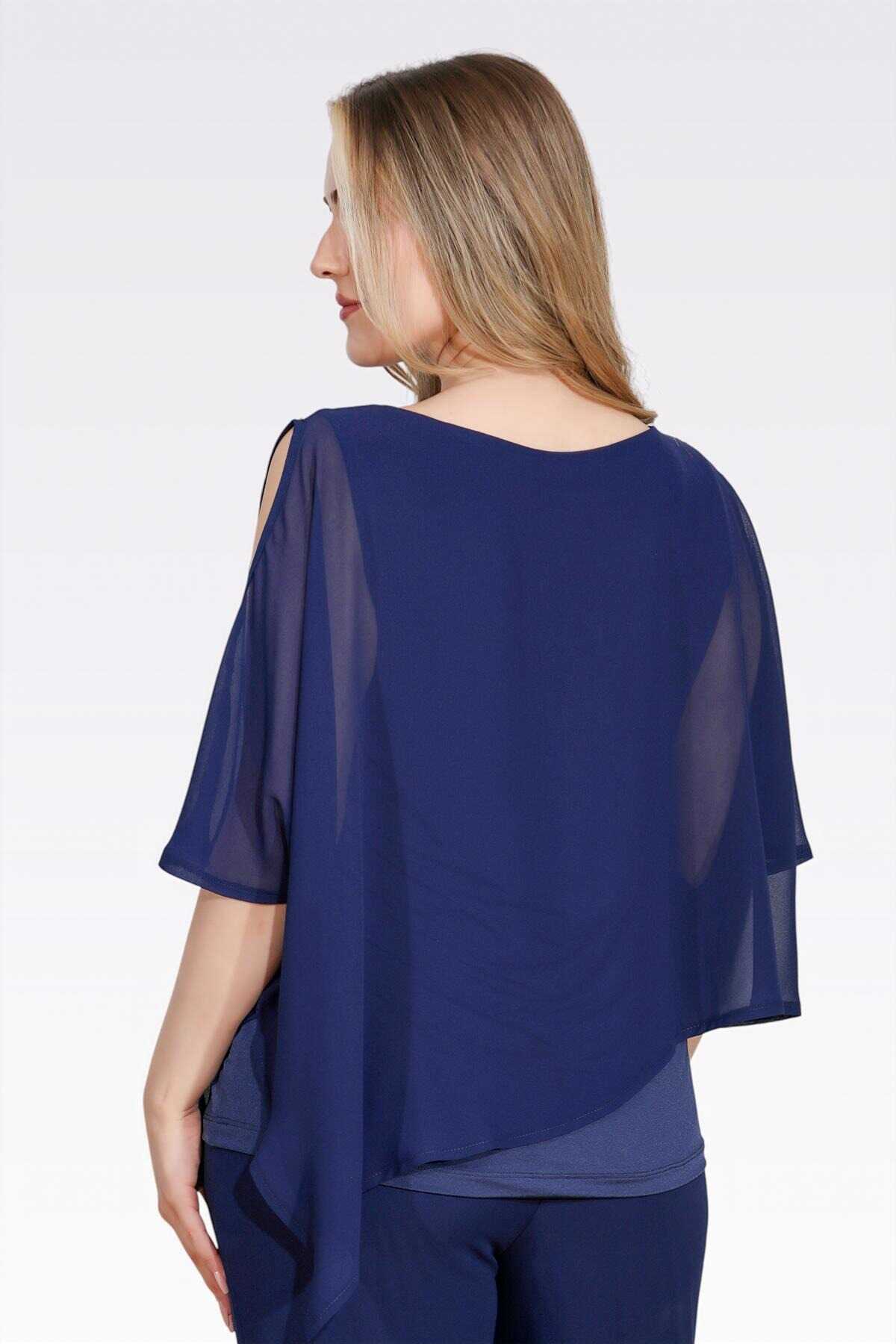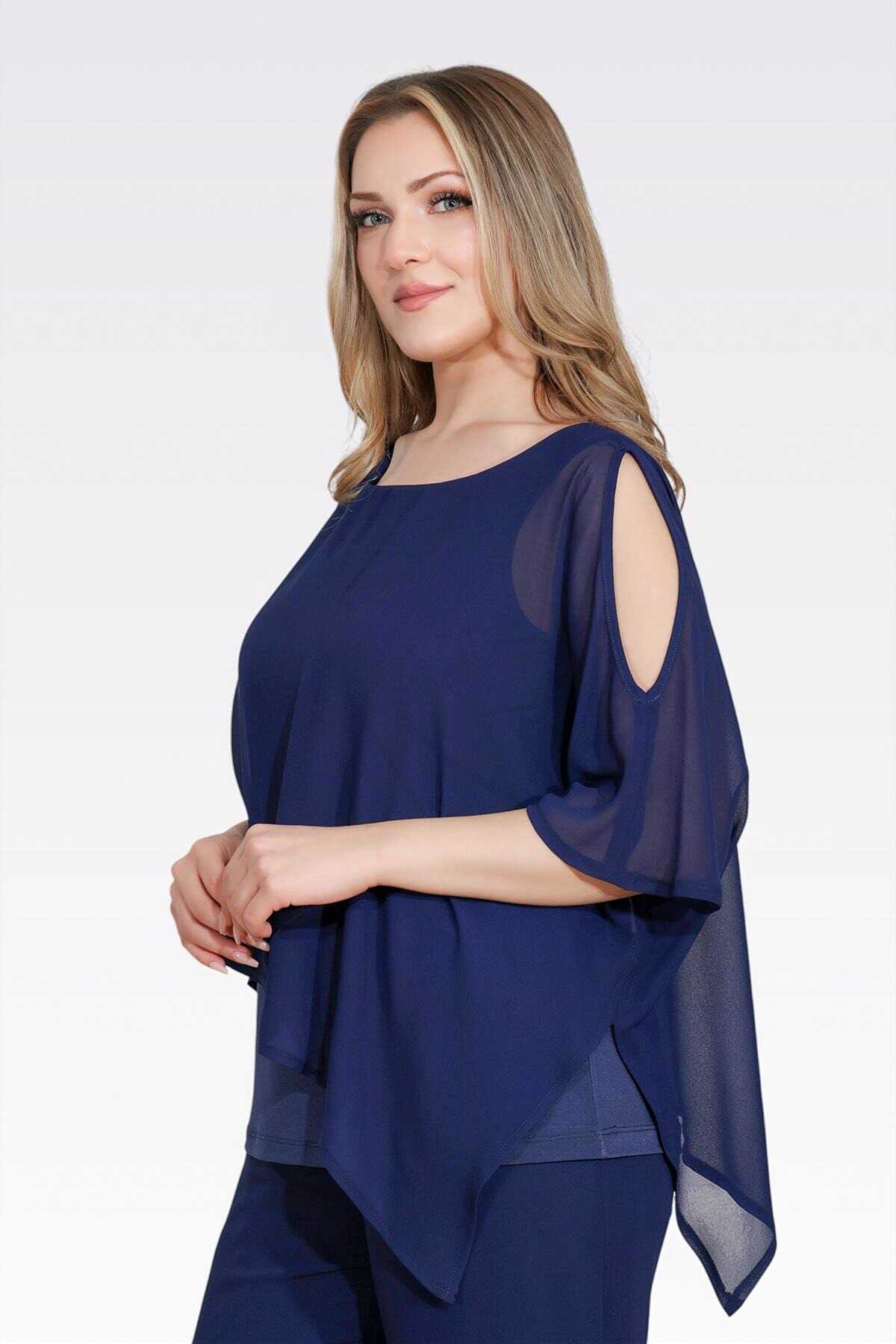 10748 KAYIK YAKA RAHAT KESİM ASTARLI ŞİFON TUNİK