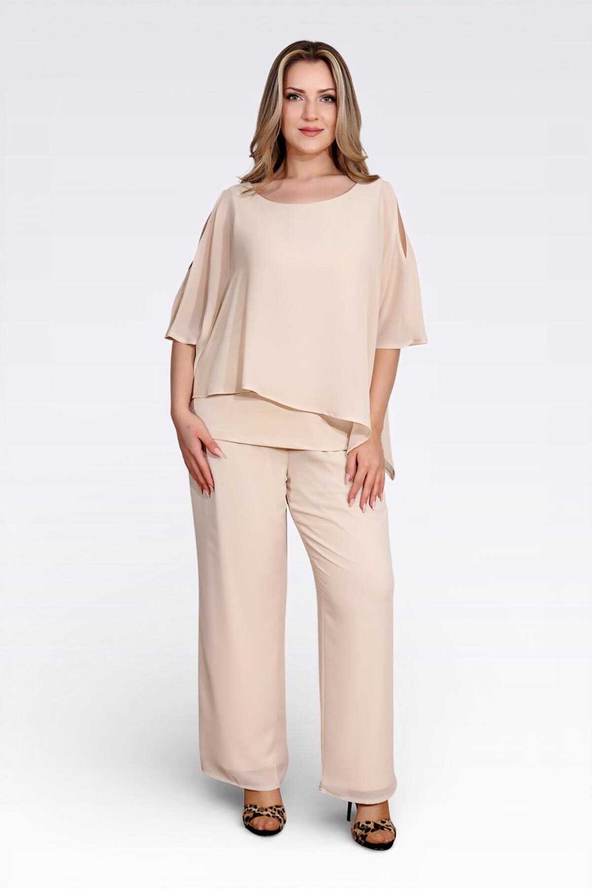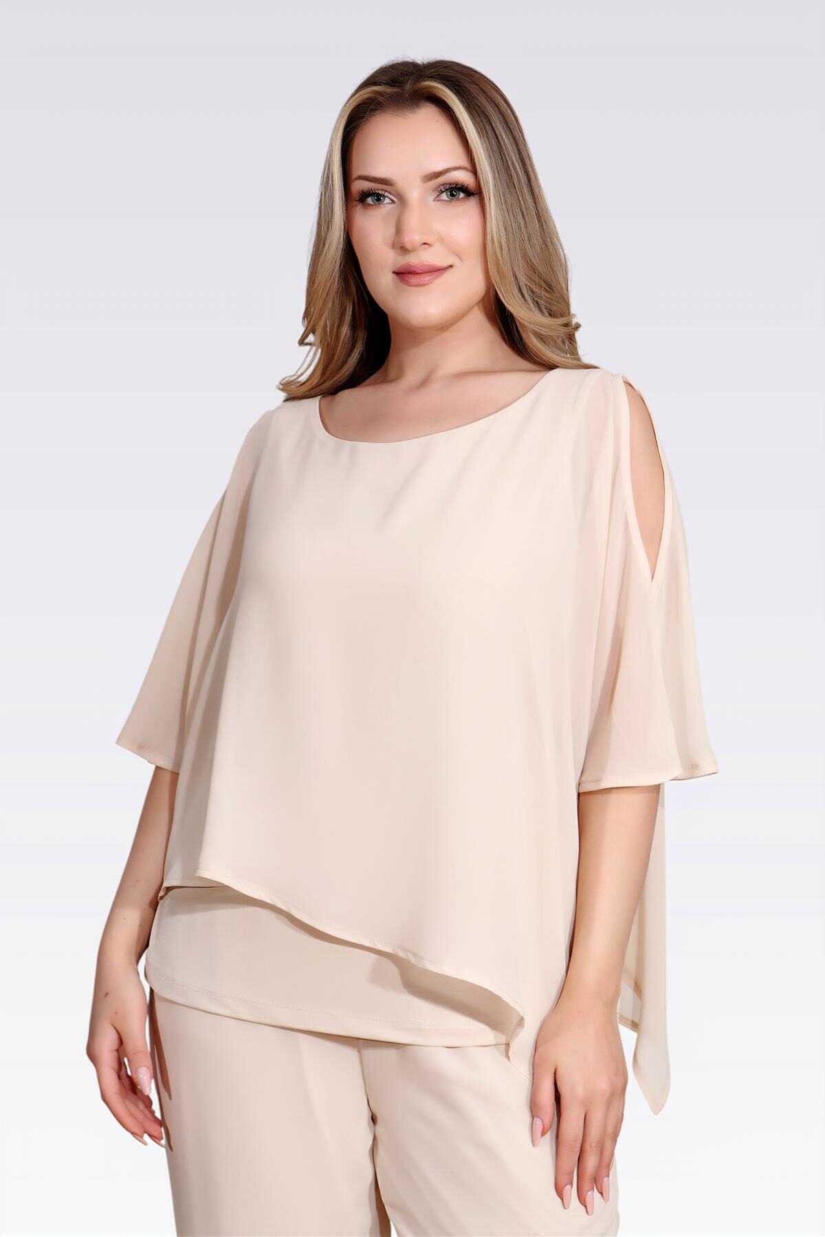 10748 KAYIK YAKA RAHAT KESİM ASTARLI ŞİFON TUNİK