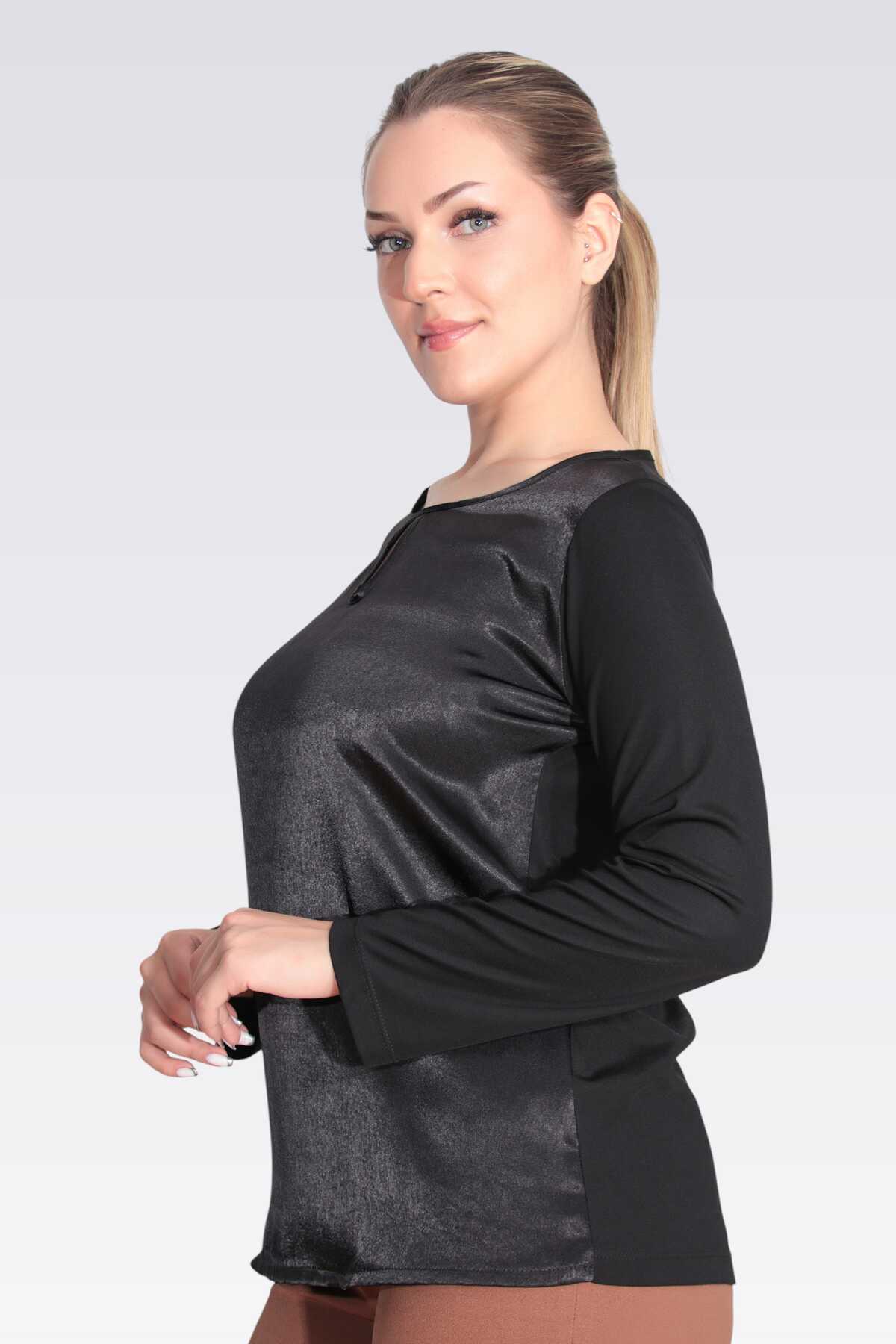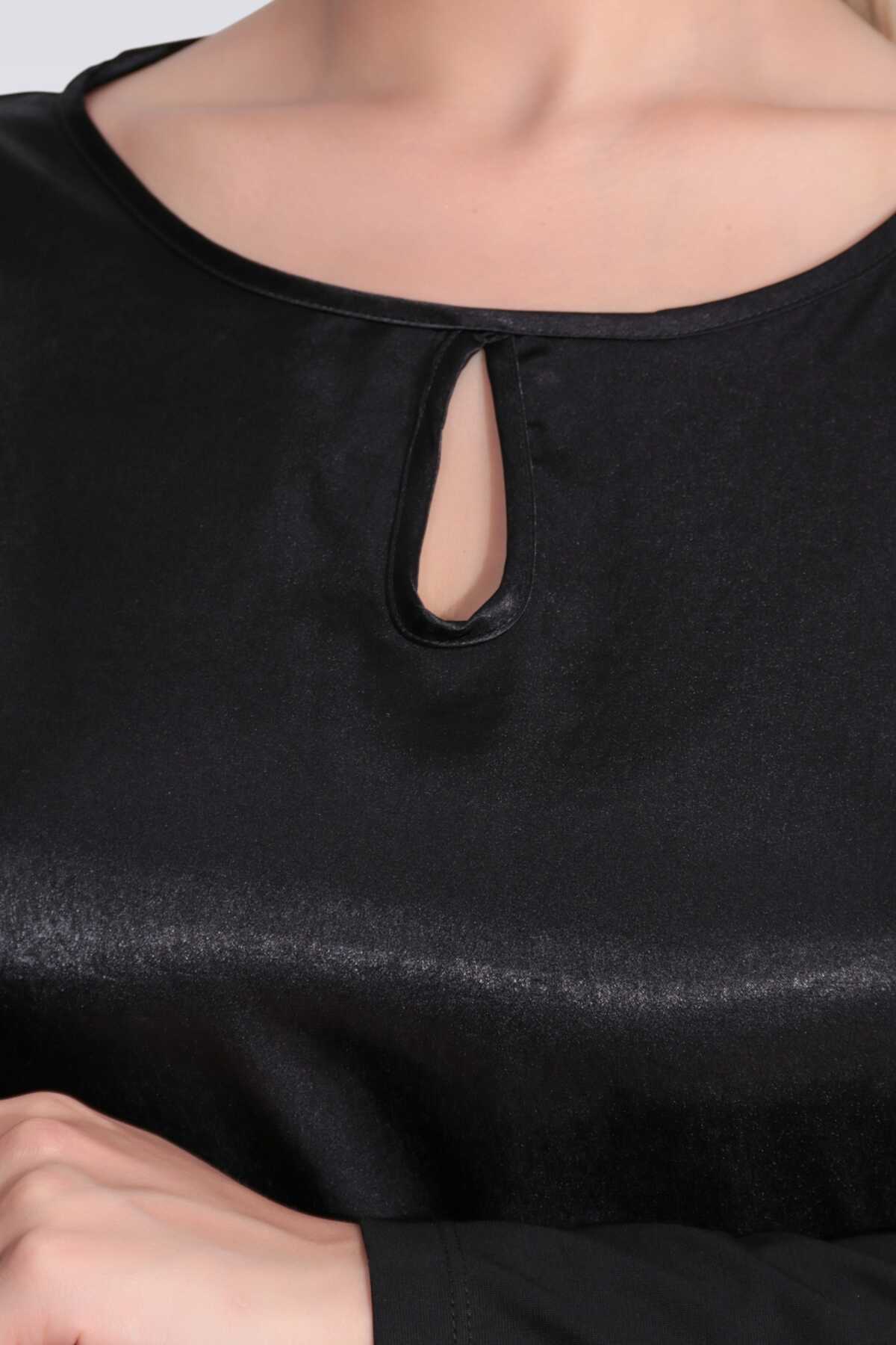 11049 SATEN GARNİLİ DAMLA YAKA ÖRME BLUZ