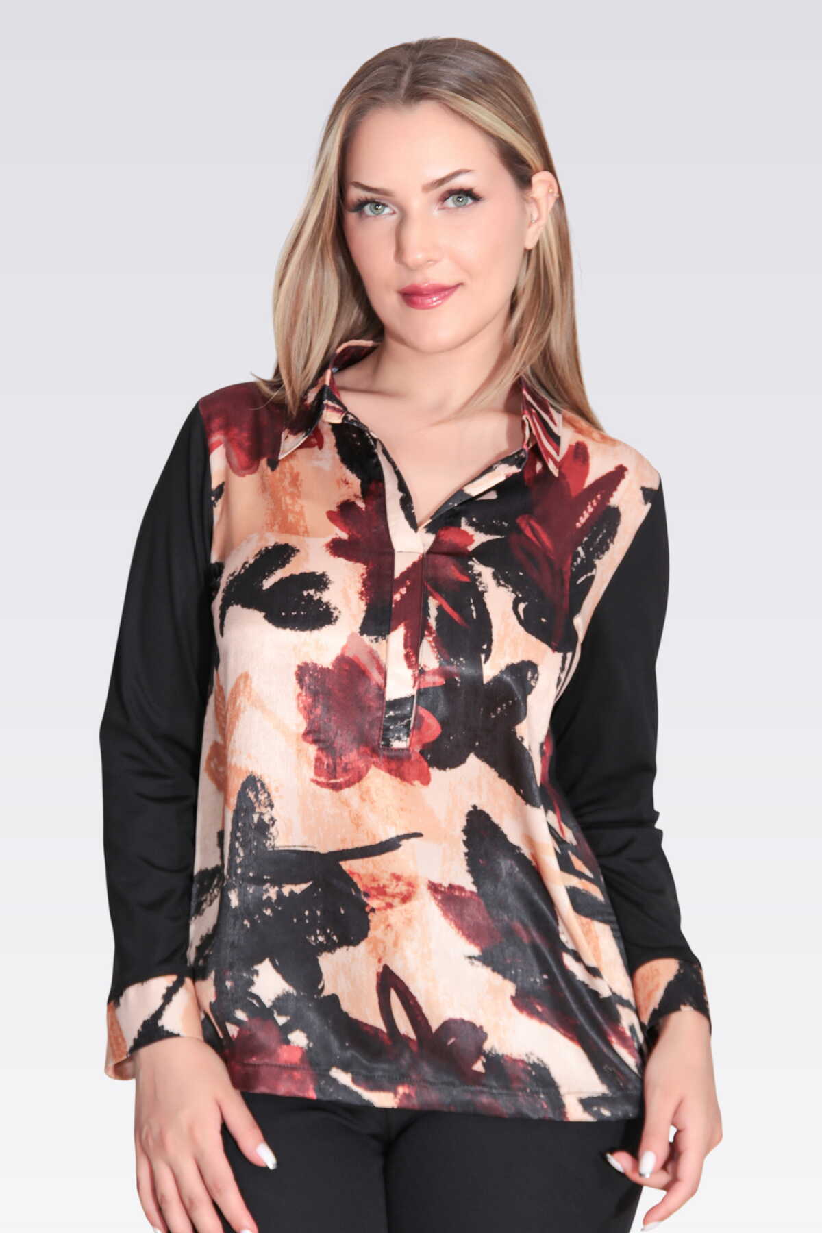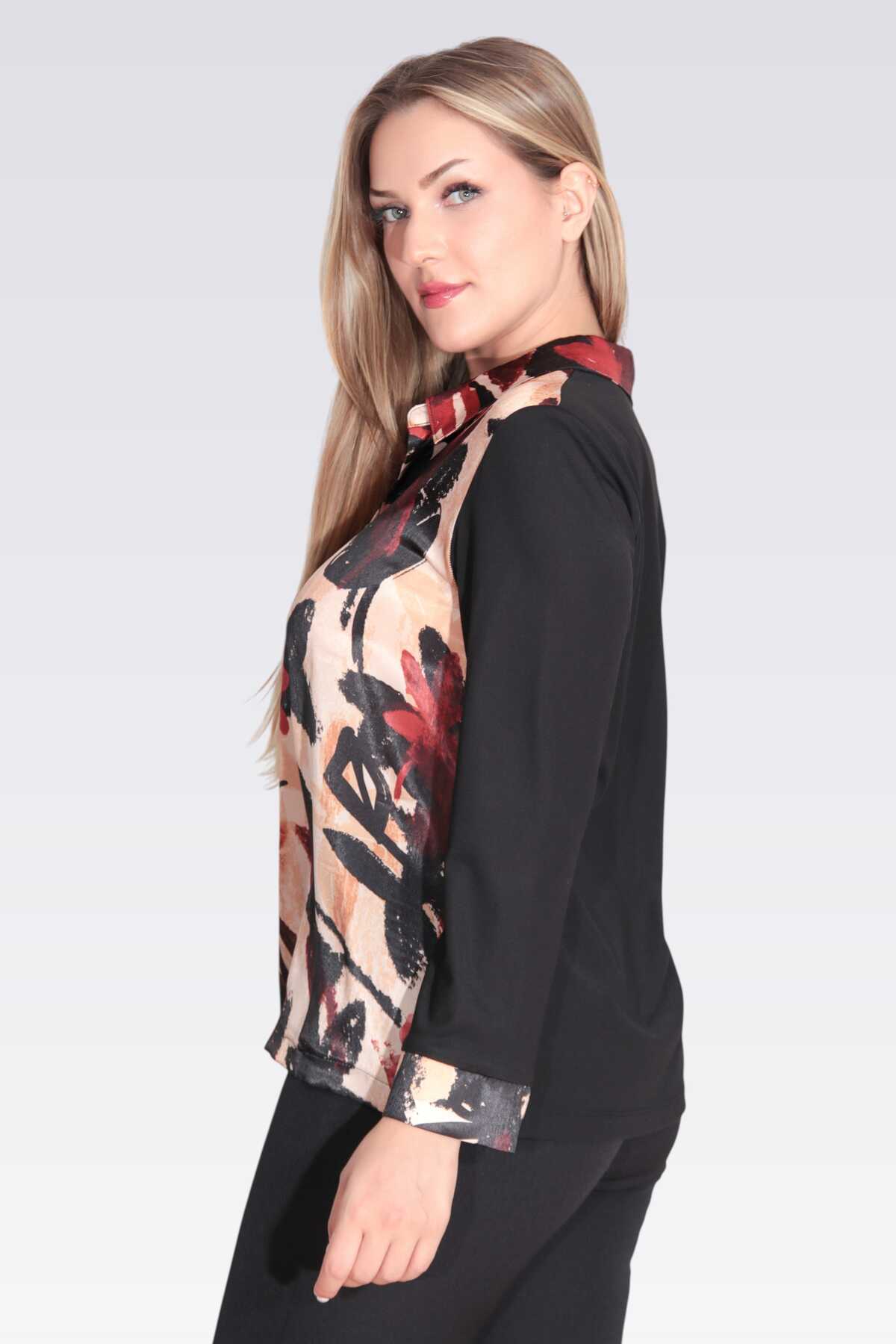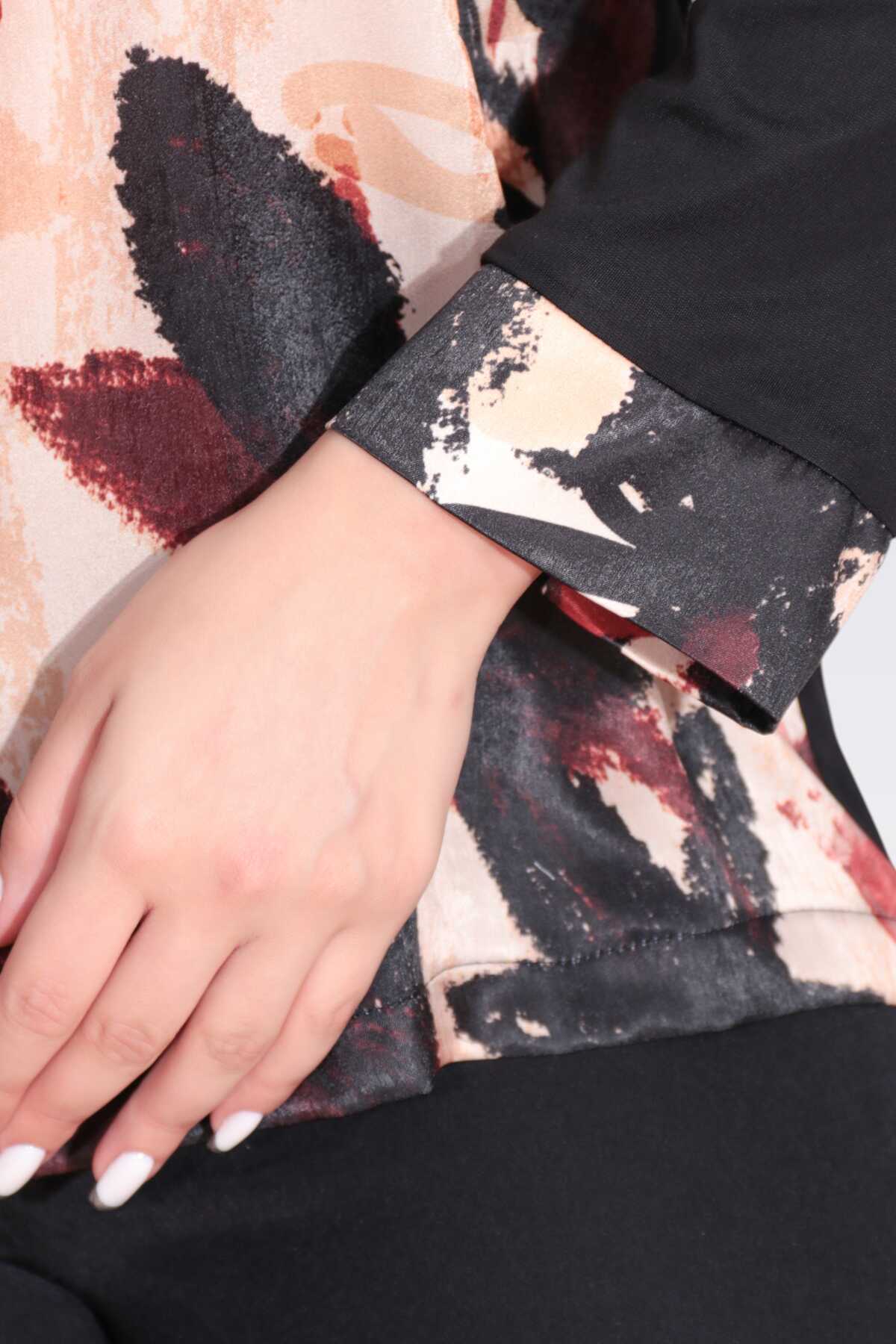 11063 DESENLİ SATEN KUMAŞ KOMBİNLİ ŞIK ÖRME BLUZ