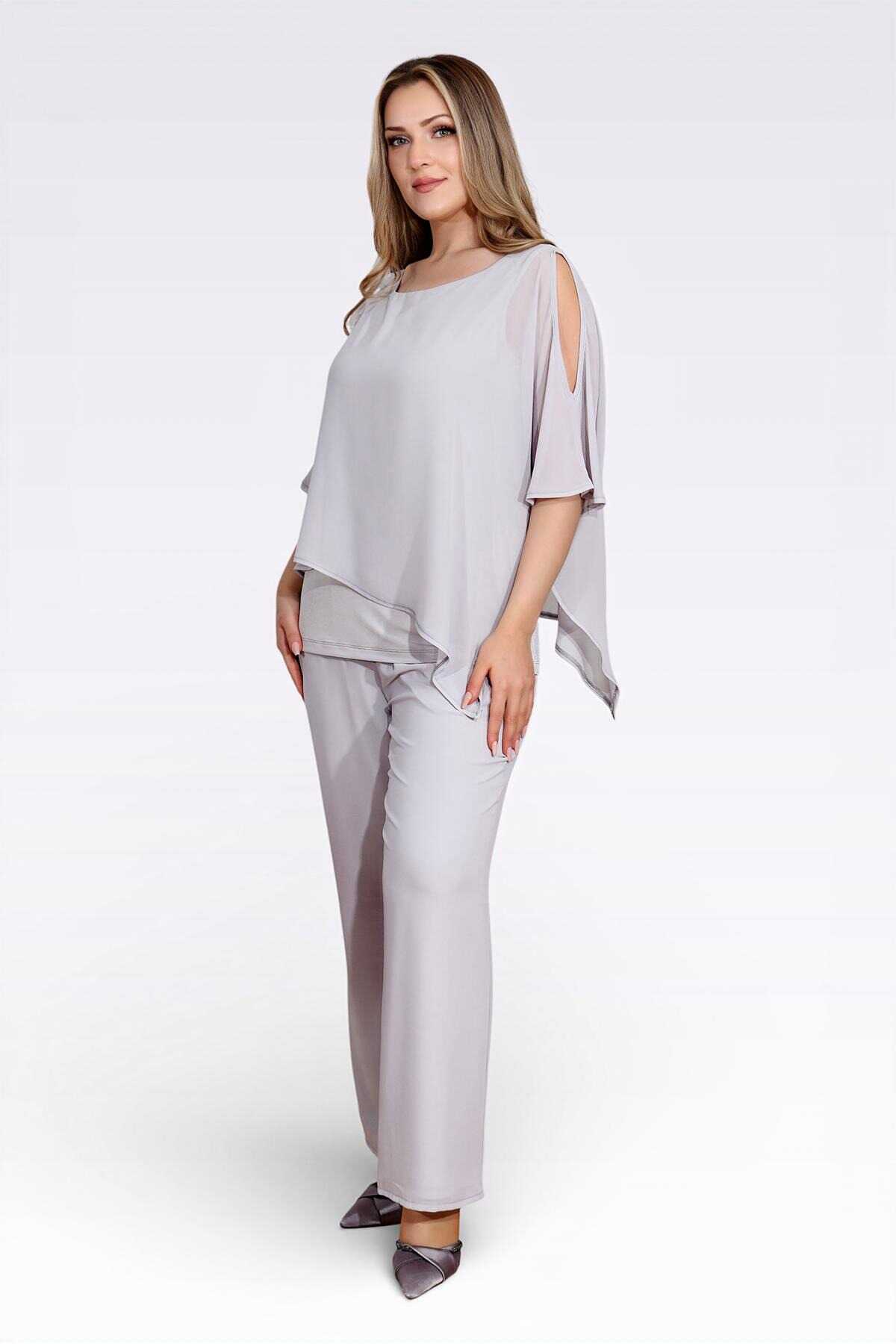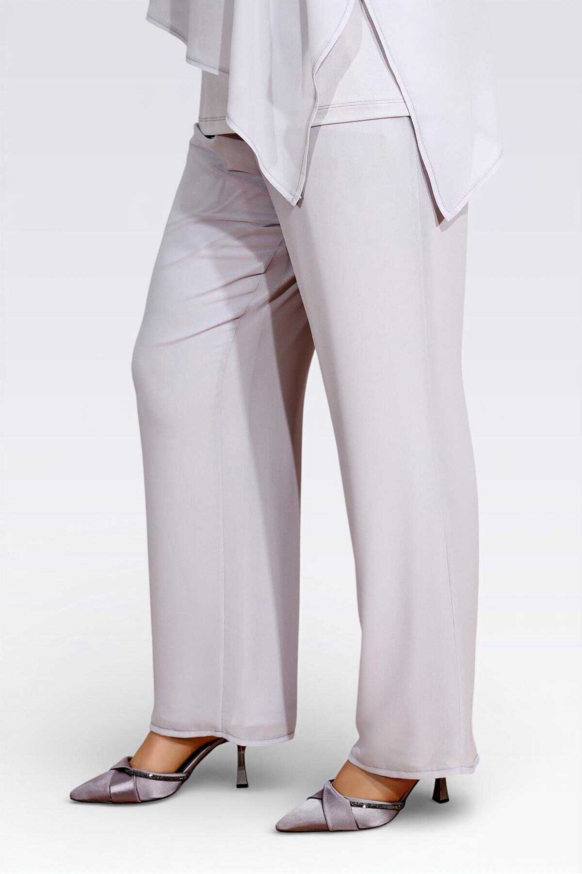 30094 BELİ LASTİKLİ BORU PAÇA ASTARLI ŞİFON PANTOLON