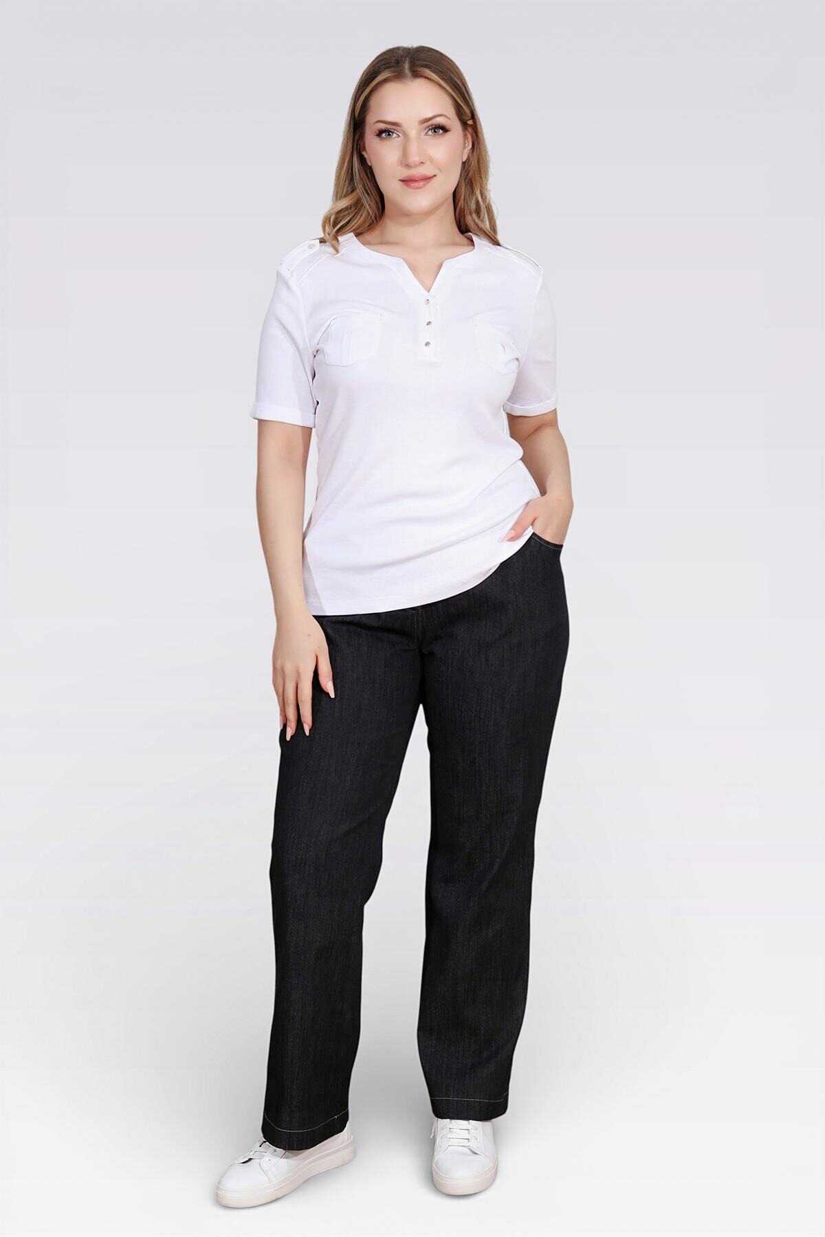 30148 BELİ LASTİKLİ RAHAT KESİM BORU PAÇA DENİM PANTOLON