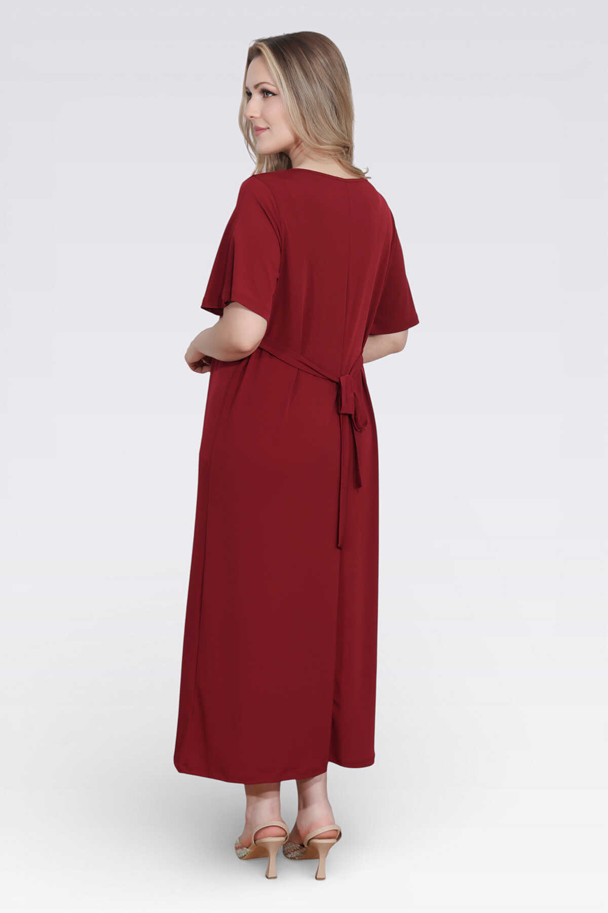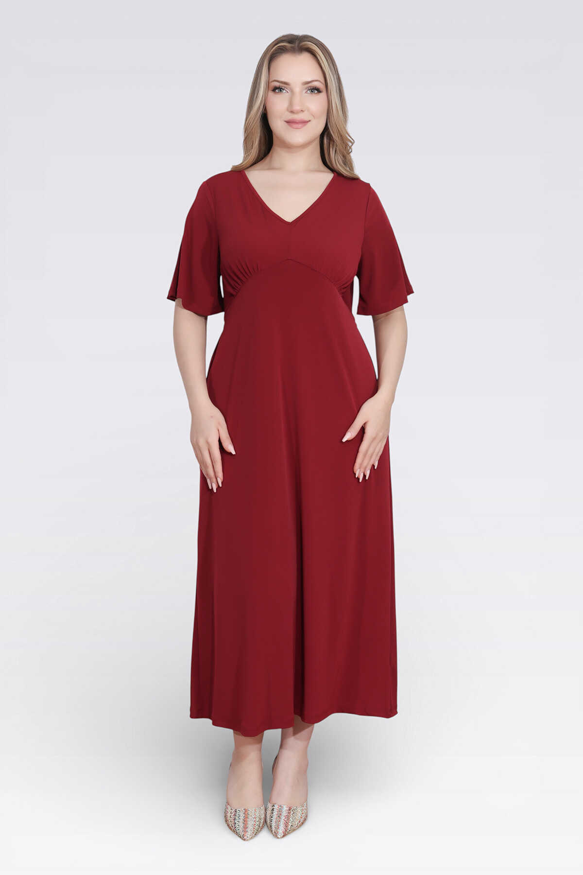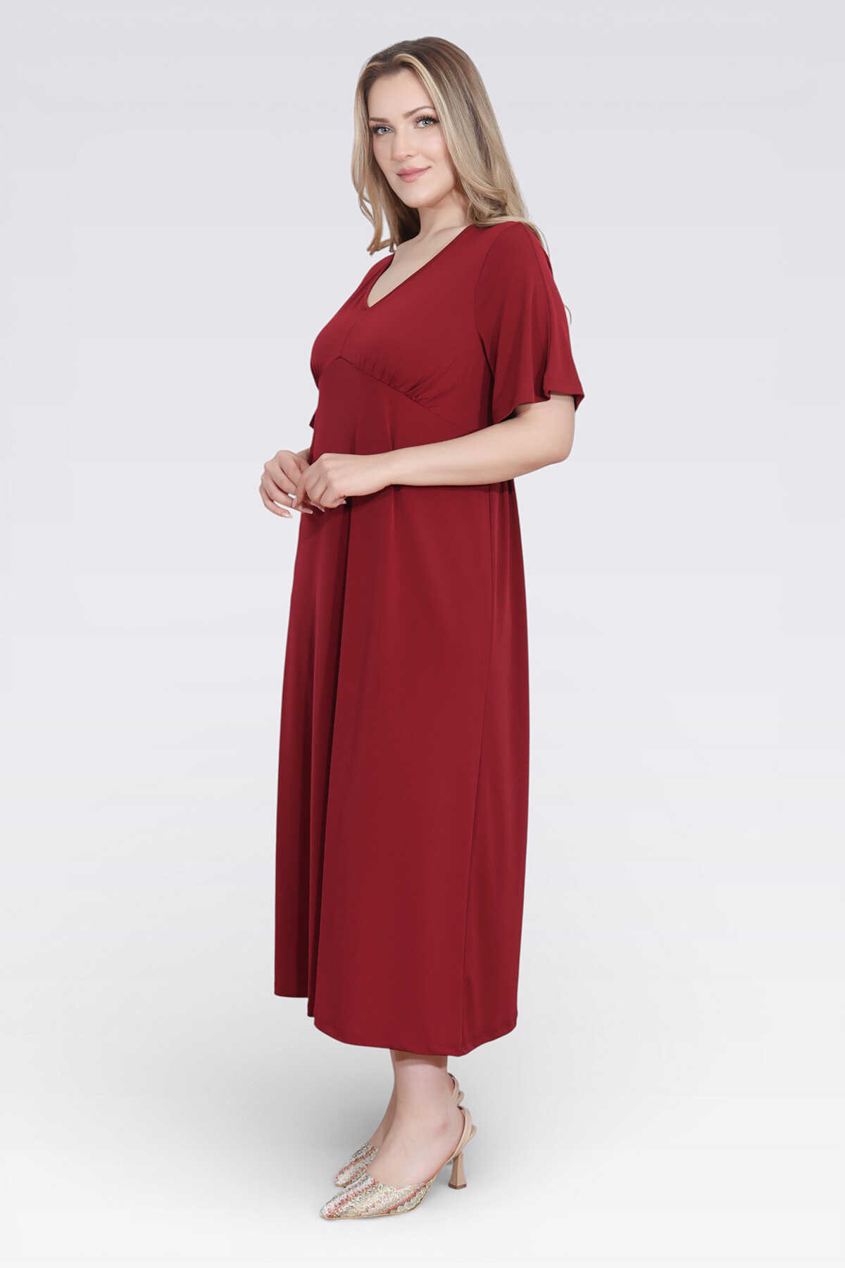 40194 BÜZGÜ DETAYLI VOLAN KOL ŞIK UZUN ELBİSE