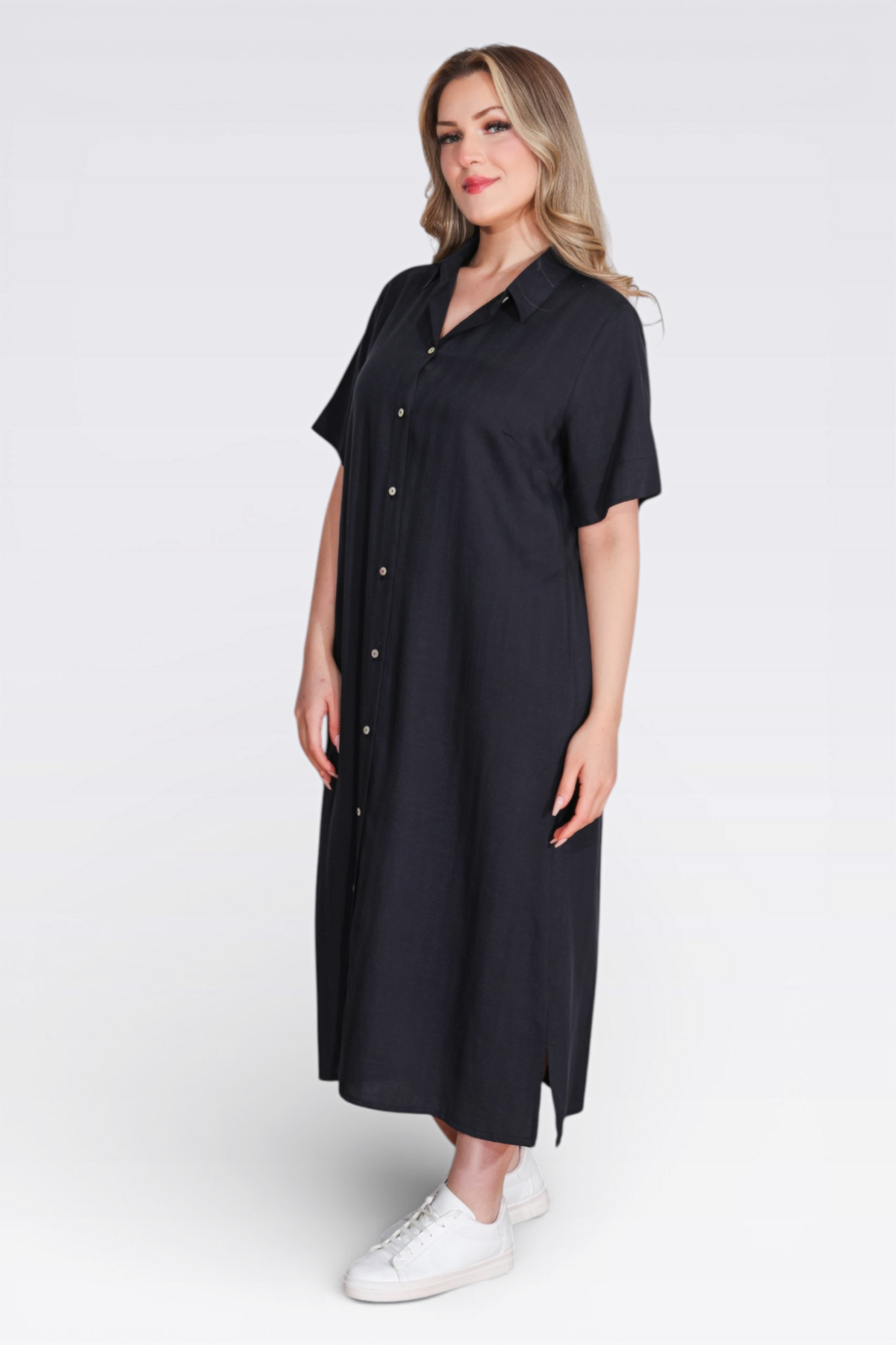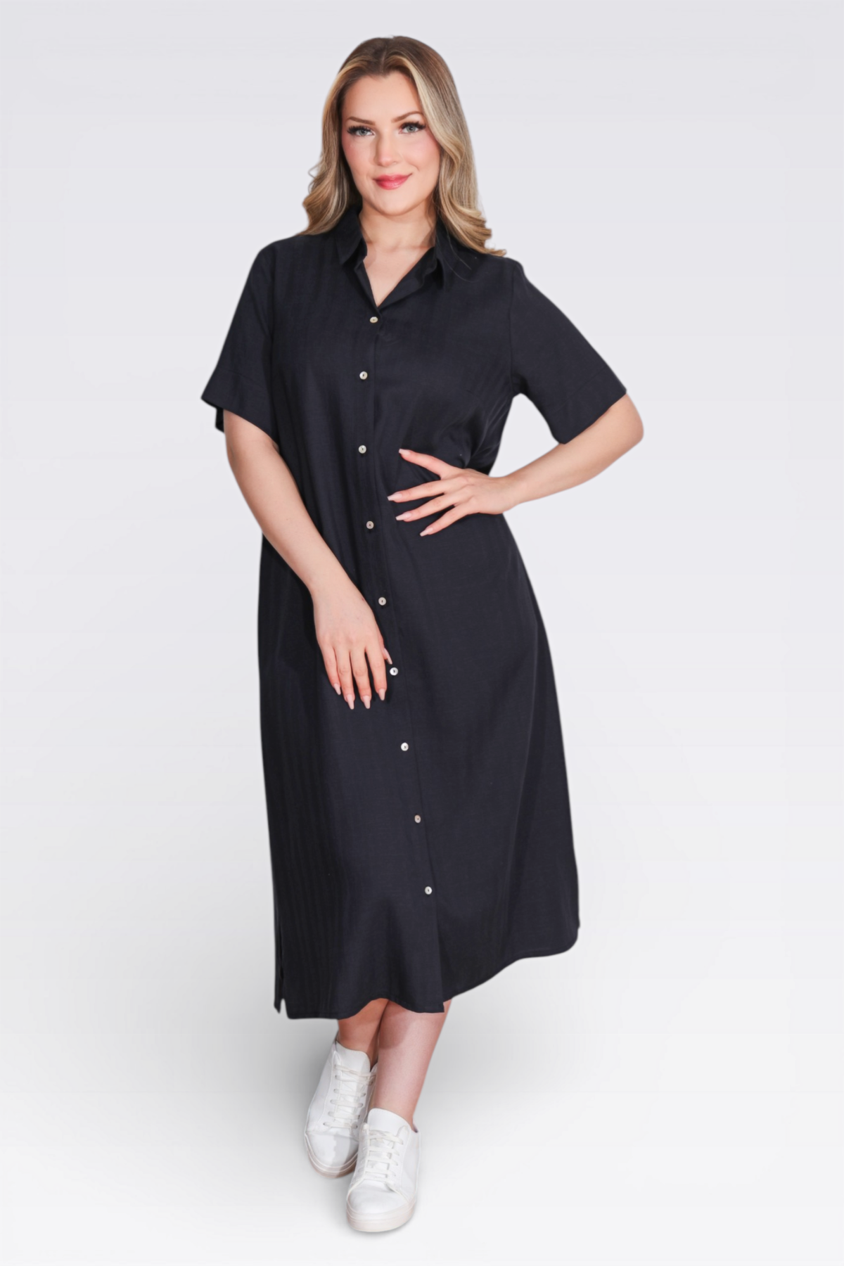 40289 HAFİF KUMAŞ KISA KOL ELBİSE