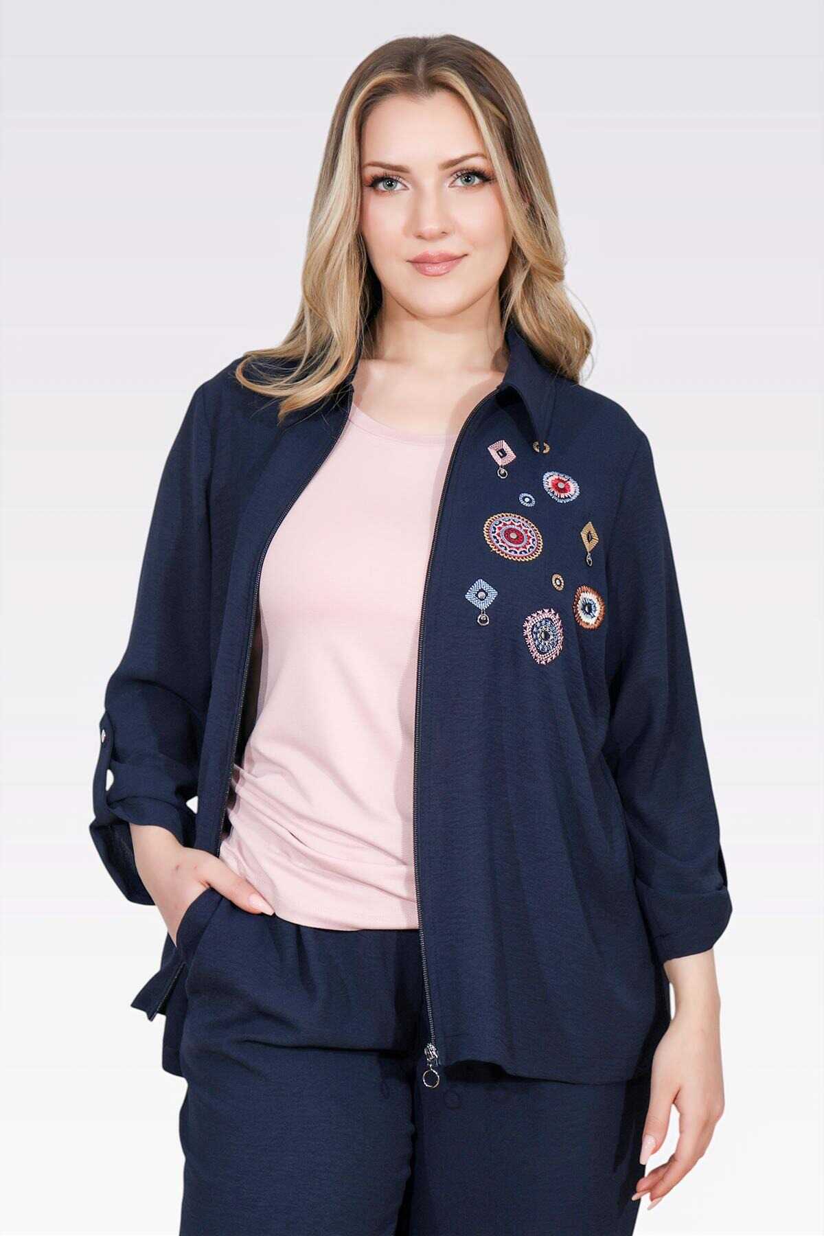 50138 NAKIŞ DETAYLI FERMUARLI AYROBİN CEKET