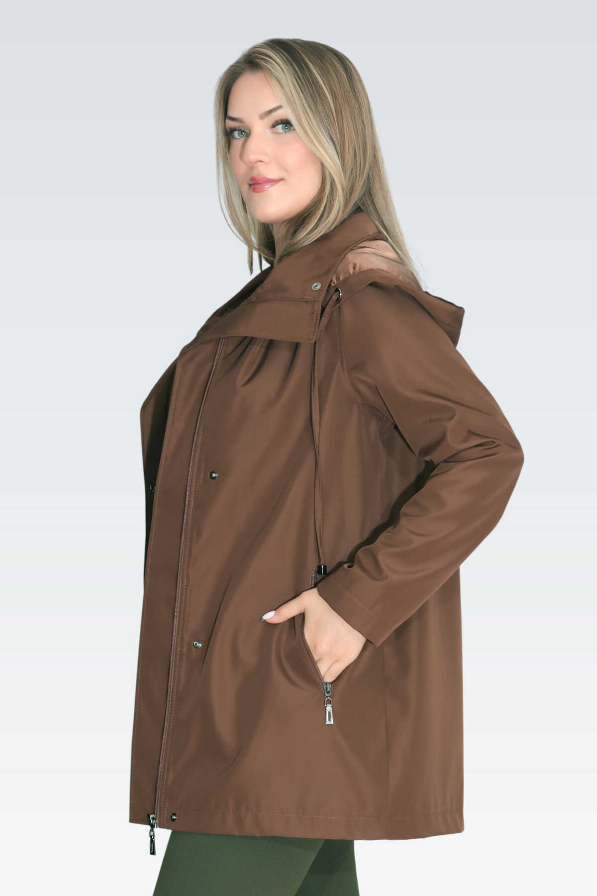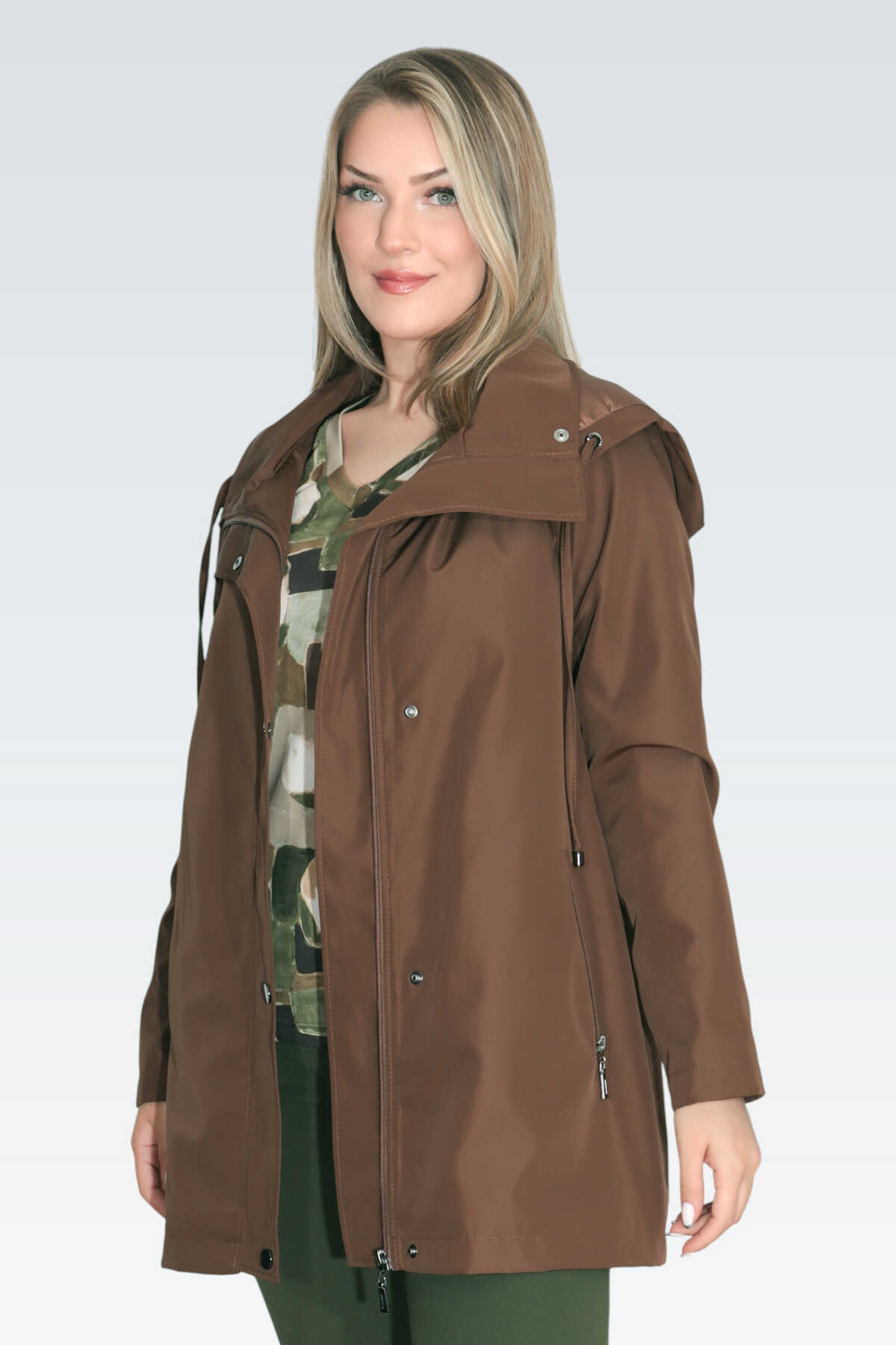60131 DEMONTE KAPÜŞON DEVRİK YAKA RAHAT KESİM TRENÇKOT